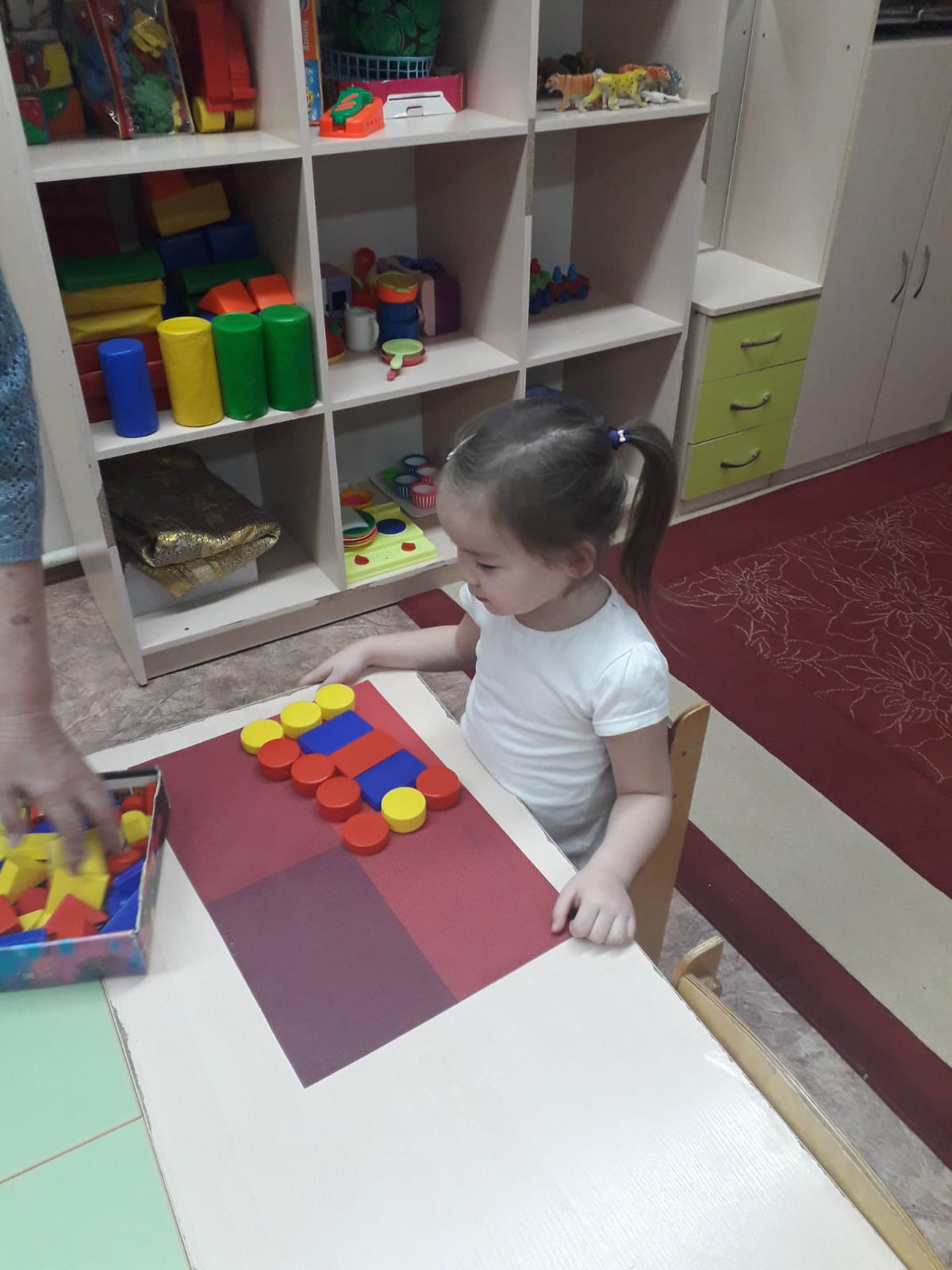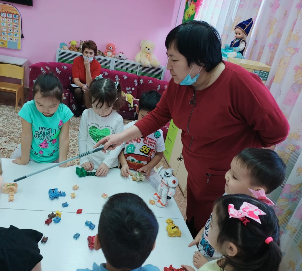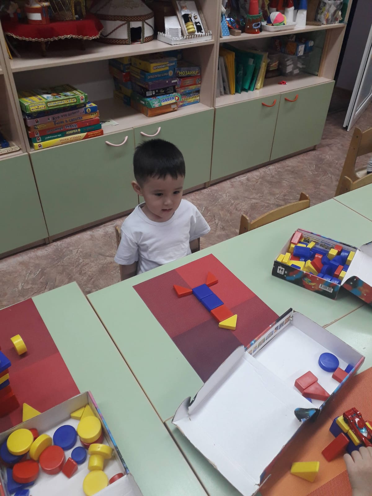Коврограф Воскобович Ойын – балалардың танымын, тіл байлығын, сөзбік қорын дамытудың ең тиімді жолы болып саналады. Мектепке дейінгі мекемеде ойынның бірнеше түрі (дидактикалық, театрлық, сюжетті- ролдік, қимылды т.б) кеңінен қолданылады. Біз өз іс тәжірибемізде Вячеслав Вадимович Воскобовичтің «Коврограф Воскобовича”, «Коврограф Ларчик” ойындарына сүйене отырып, ойындарды дамытудамыз. Бұл ойындардың мақсаты ойлау операцияларын дамыту болып табылады. Воскобович ойындары логикалық та, шығармашылық та ойлауды дамытады. Бала пішіндер мен түстерді үйренеді, заттарды әр түрлі белгілері бойынша салыстыру мен топтастыруды үйренеді. Сонымен бірге, геометриялық пішіндердің ар жағынан бала толыққанды образдарды көре алады, сол арқылы өзінің қиялы мен кеңістіктік ойлау қабілетін дамытады. Ойын алаңына тетіктерді орналастыру мен шамдарды құрастыру болса, ұсақ моторика мен қозғалыс үйлесімін жетілдіреді.